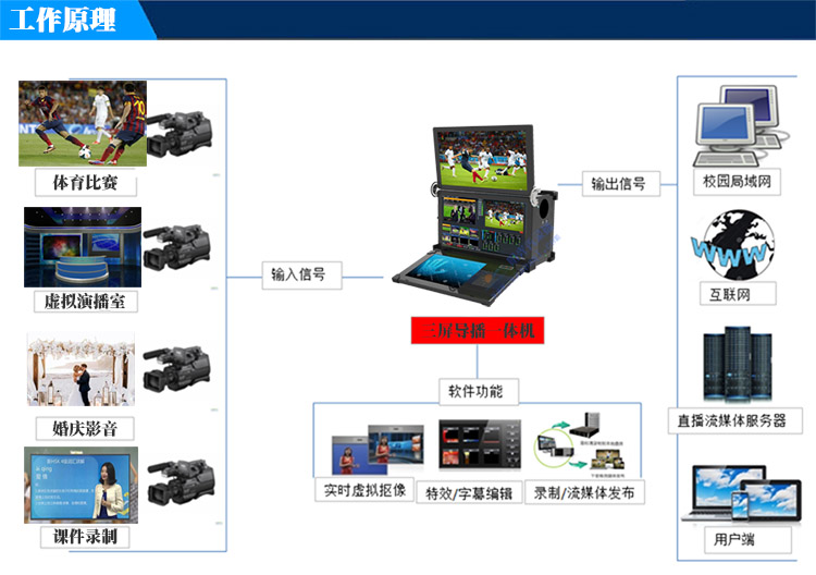 应用:体育赛事,婚礼现场,课件录制,校园演播厅等。